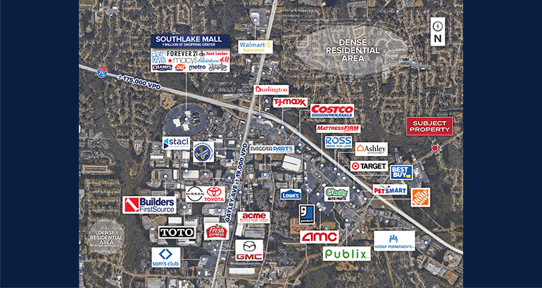 - Southlake Mall continues its evolution into a hybrid retail and community destination, anchored by nearly 100 national and regional tenants, the Morrow Center event venue, and the $117M Clayton Convocation Center currently under development.