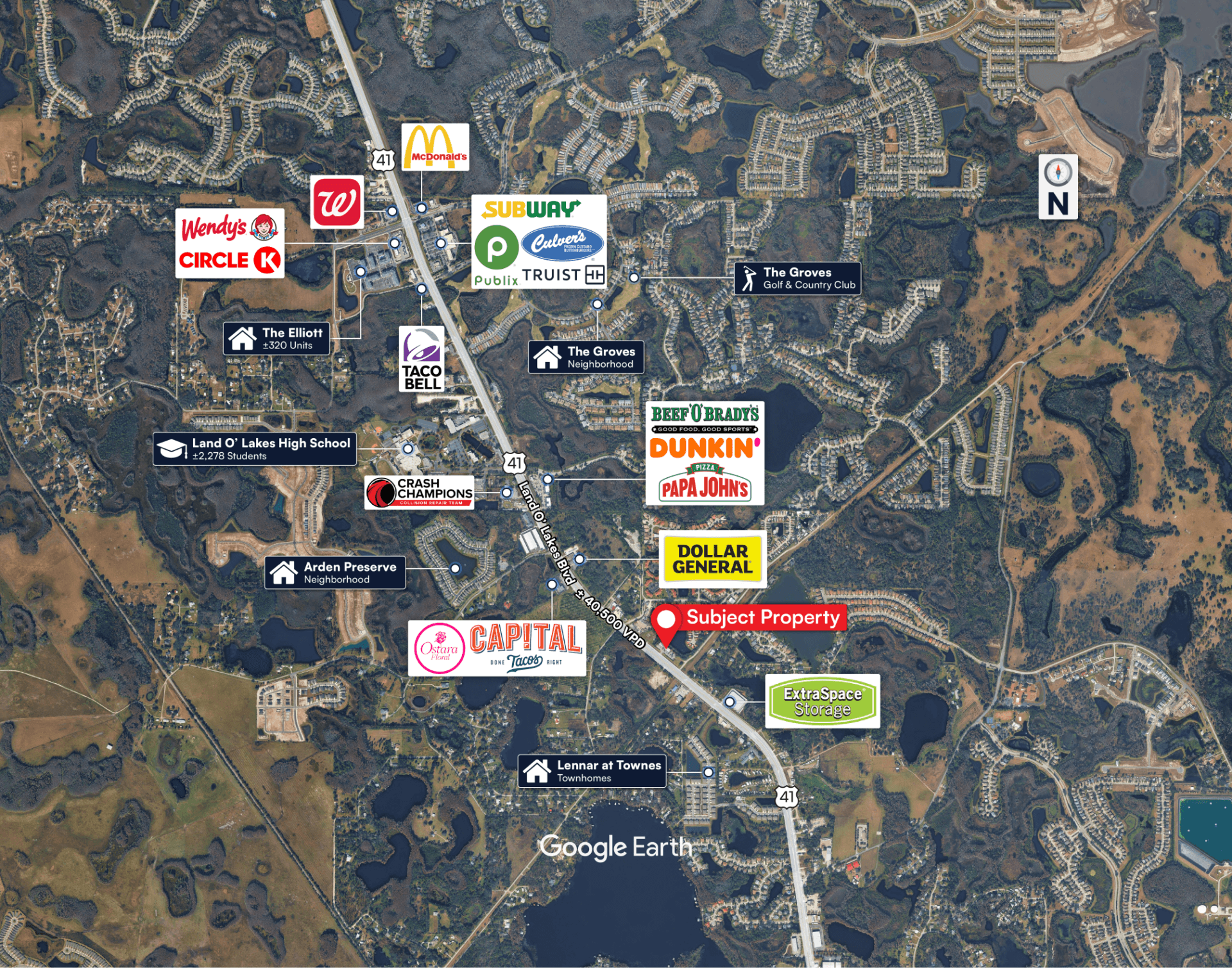 Excellent Visibility & Traffic: Positioned on Land O’ Lakes Blvd, a major north–south arterial, the property sees approximately ±40,500 VPD, reinforcing long-term tenant demand.
