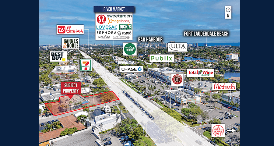 - Positioned along North Federal Highway, one of Fort Lauderdale’s busiest thoroughfares, the property benefits from exceptional visibility with over 54,500 vehicles per day.