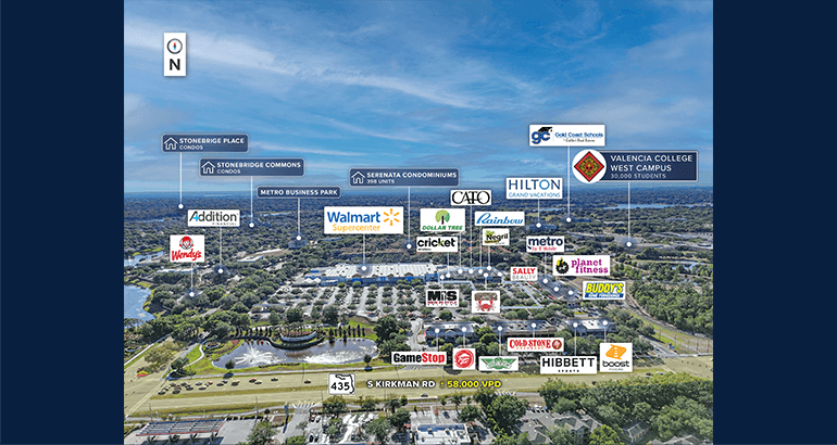 High Traffic Corridor: Located along S. Kirkman Road, which boasts an impressive traffic count of approximately 58,000 vehicles per day, consistent driving visibility and customer access.