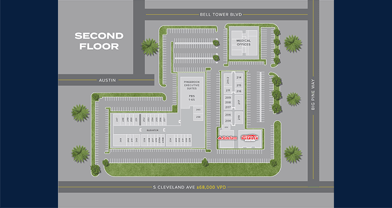 - Diverse roster of retail, medical, and office tenants, driving steady foot traffic and cross-use demand
