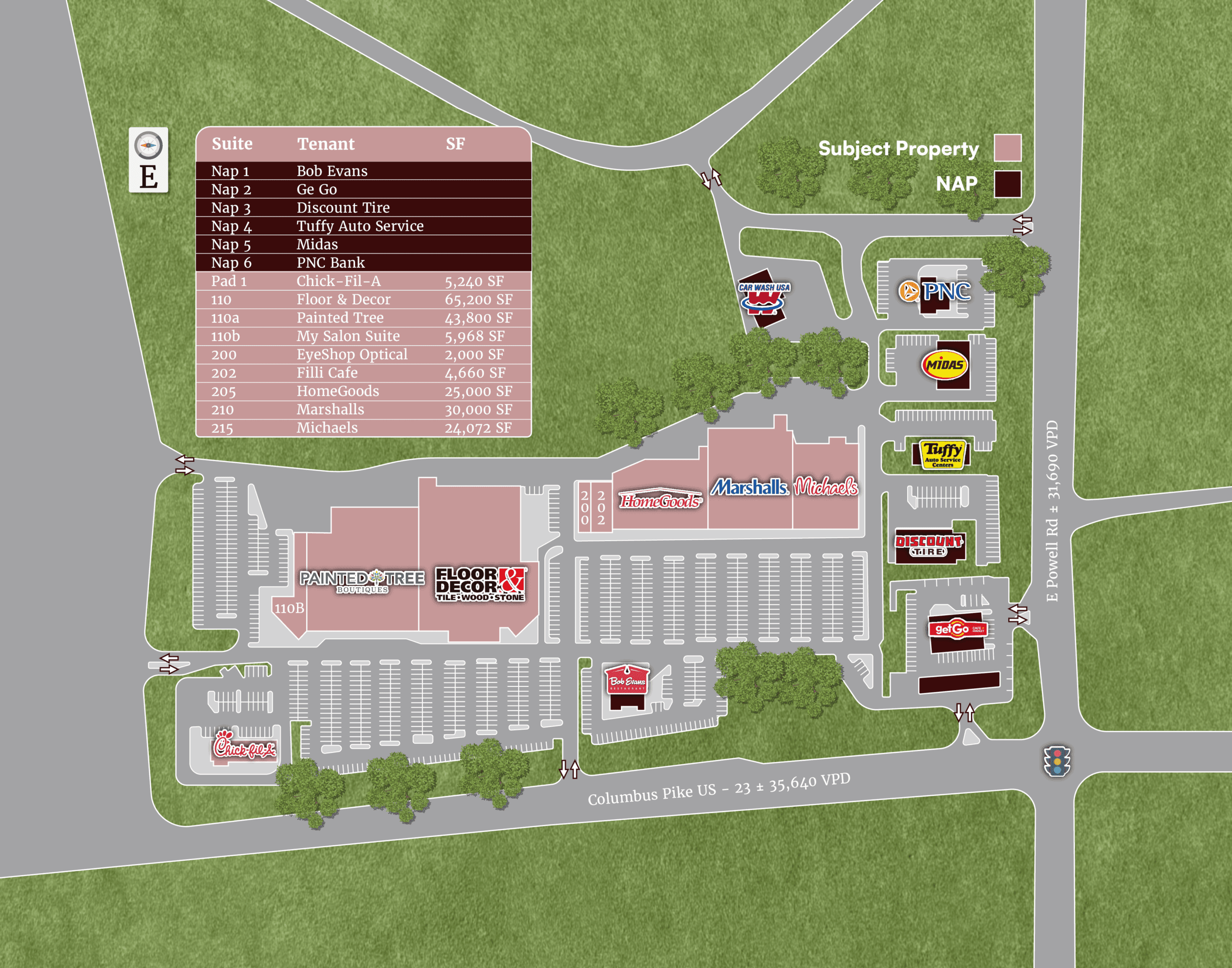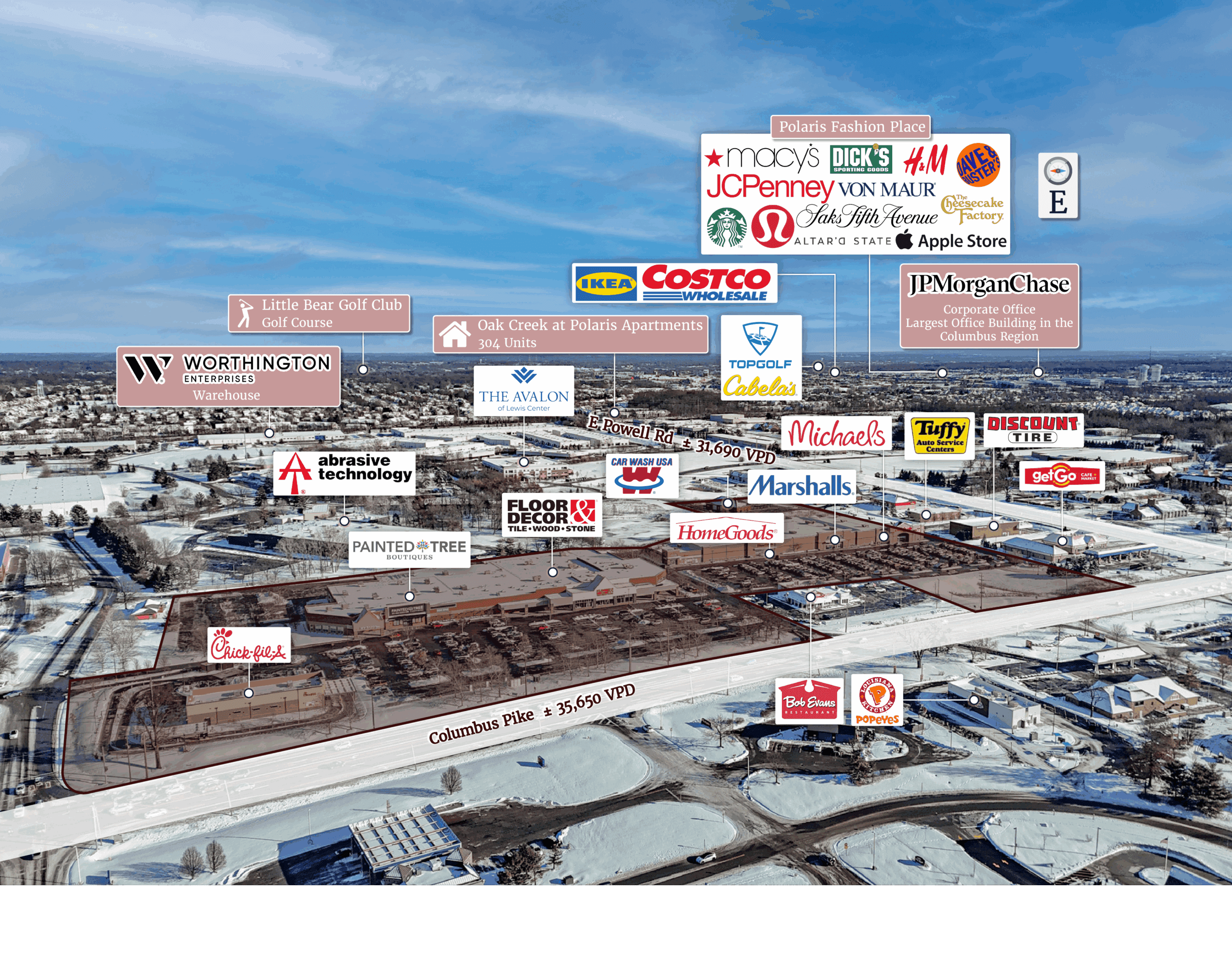 Ideal Location in Heart of Retail Corridor at Signalized Intersections Along Columbus Pike & E Powell Rd | 67,000+ Combined VPD Traffic Count | Excellent Access & Visibility | Less Than 3 Miles From I-71 & Polaris Town Center