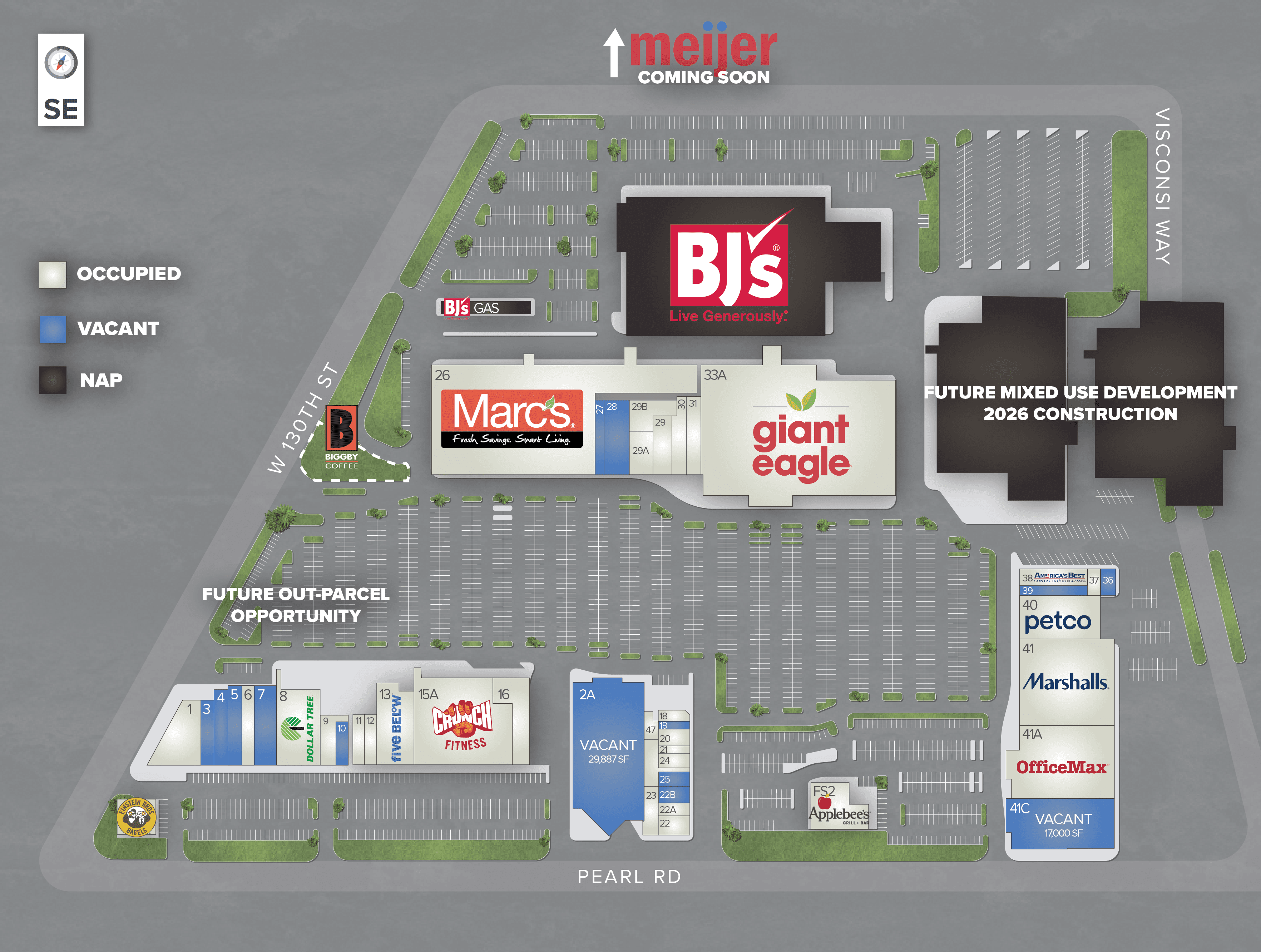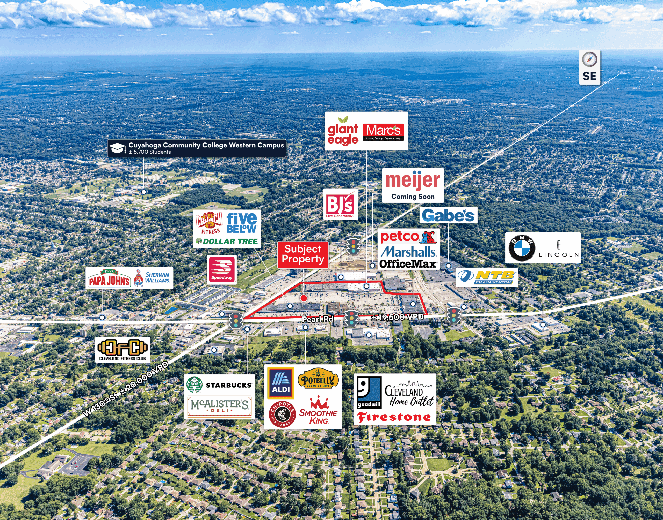 - Excellent Access and Visibility from Pearl Rd (±19,500 VPD), W 130th St (±20,000 VPD) and Smith Rd (±11,500 VPD)