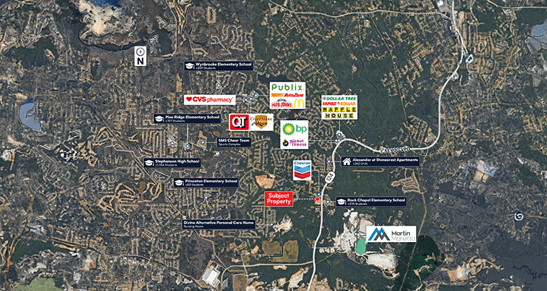 Great visibility from Rock Chapel Road and Stephenson Road, seeing over 40,000 vehicles per day