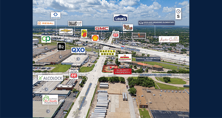 - Positioned at the signalized intersection of W Kingsley Road and S Jupiter Road with visibility to more than 39,000 vehicles per day. Located just off Interstate 635 (LBJ Freeway), which sees over 175,000 vehicles daily.