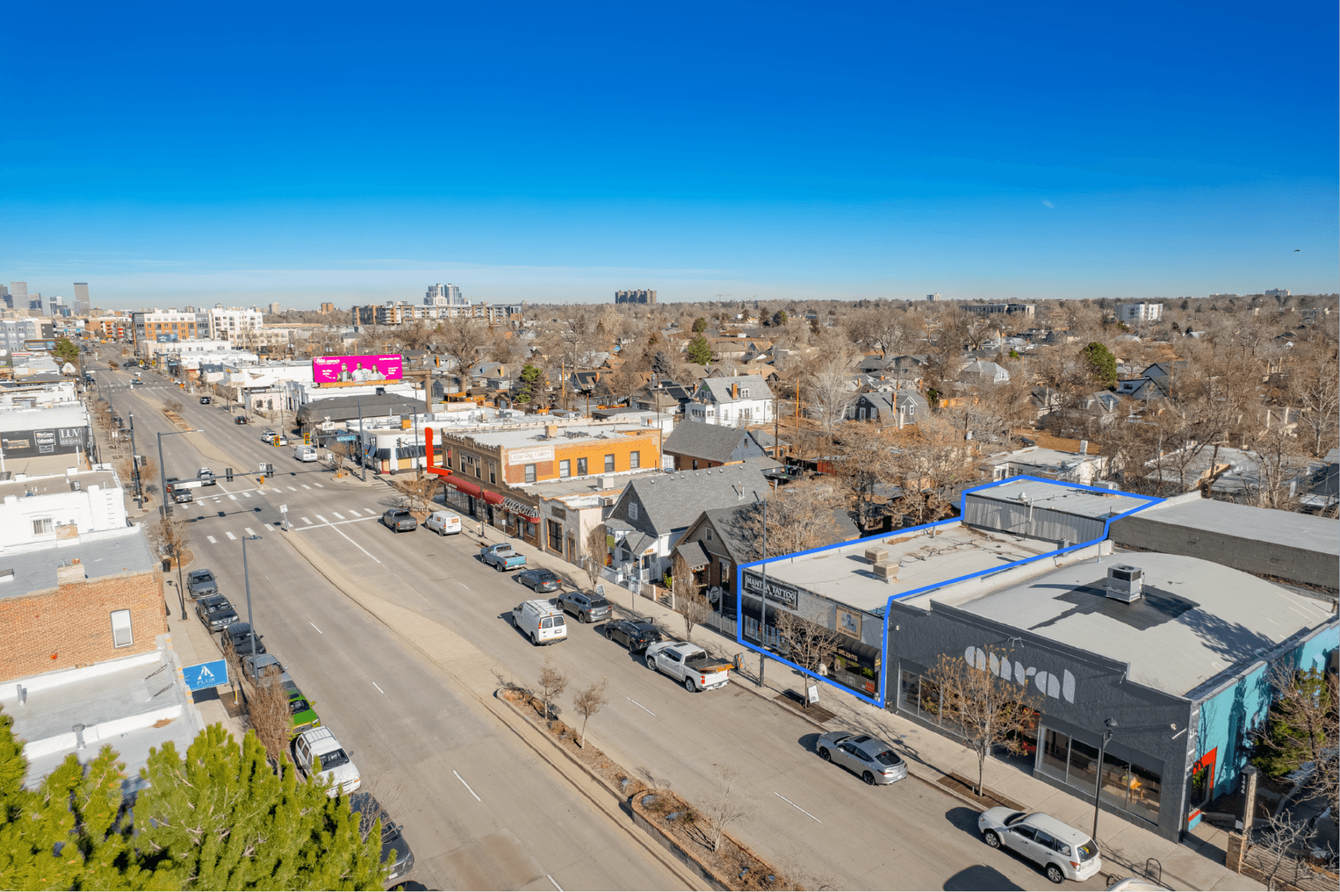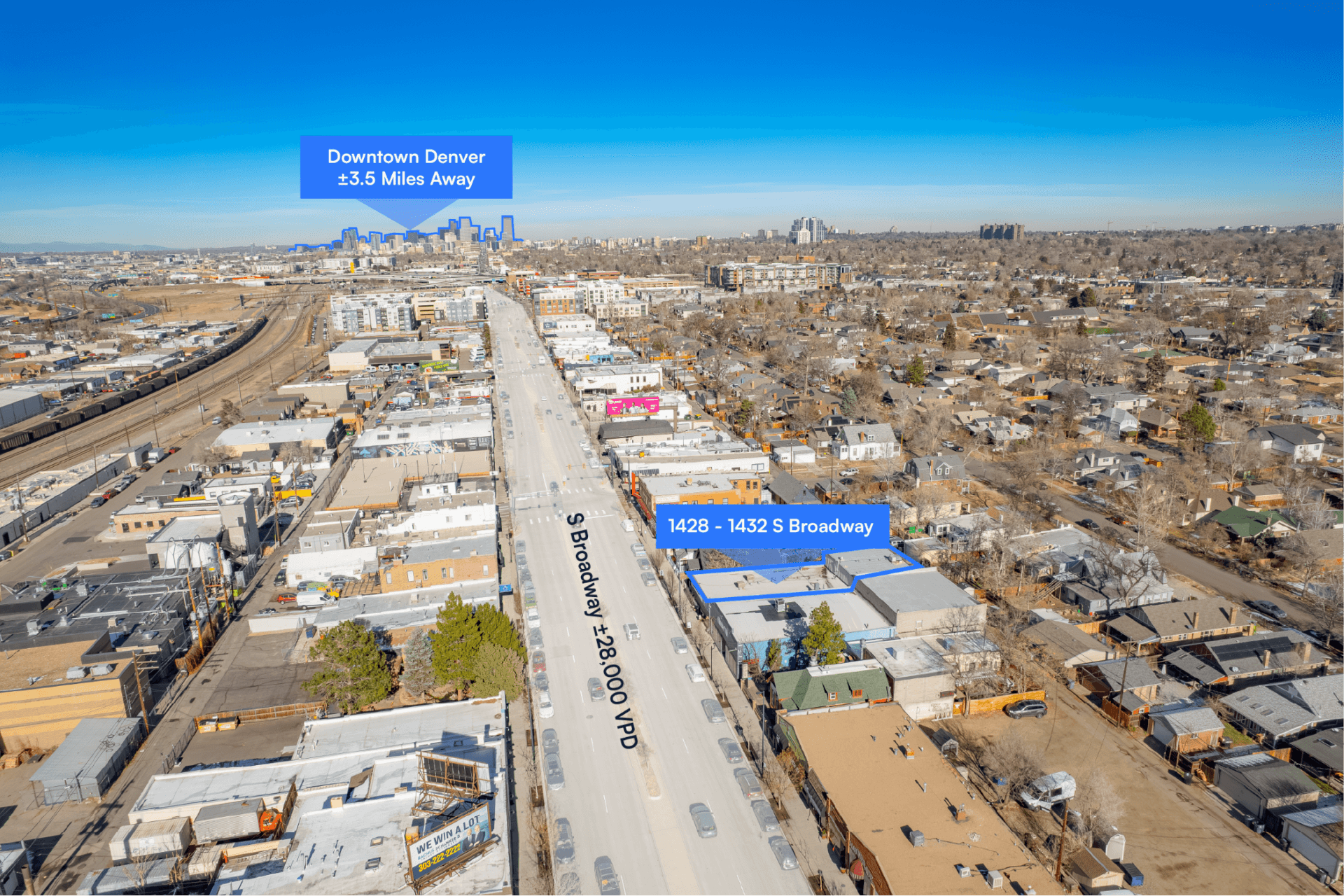Superb Central Location On South Broadway providing direct exposure along one of Denver’s most heavily trafficked retail corridors, the property benefits from exceptional visibility, strong daily traffic counts, and sustained tenant demand.