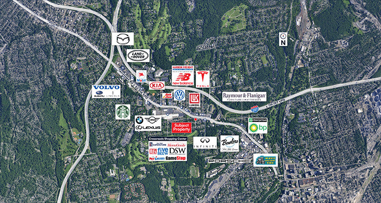 Strong Retail Corridor with Automotive Focus: Neighbors within 1 mile along Tarrytown Road include Tesla, Volkswagen, Kia, Nissan, Lexus, BMW, Infiniti, Mini, Land Rover, Volvo, Subaru, Lincoln, Mazda, Mavis, AutoZone, Enterprise, Harbor Freight, BJ’s, PGA Tour Superstore, HomeGoods, DSW, Men’s Warehouse, New Balance, Raymour & Flanigan, Bowlero, and Saks.