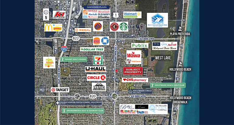 PRIME LOCATION – Strategically positioned on a hard corner just north of Hollywood Circle, one of the city’s most active hubs. The site benefits from both northbound traffic toward Sheridan Street and southbound flow into the heart of the city.