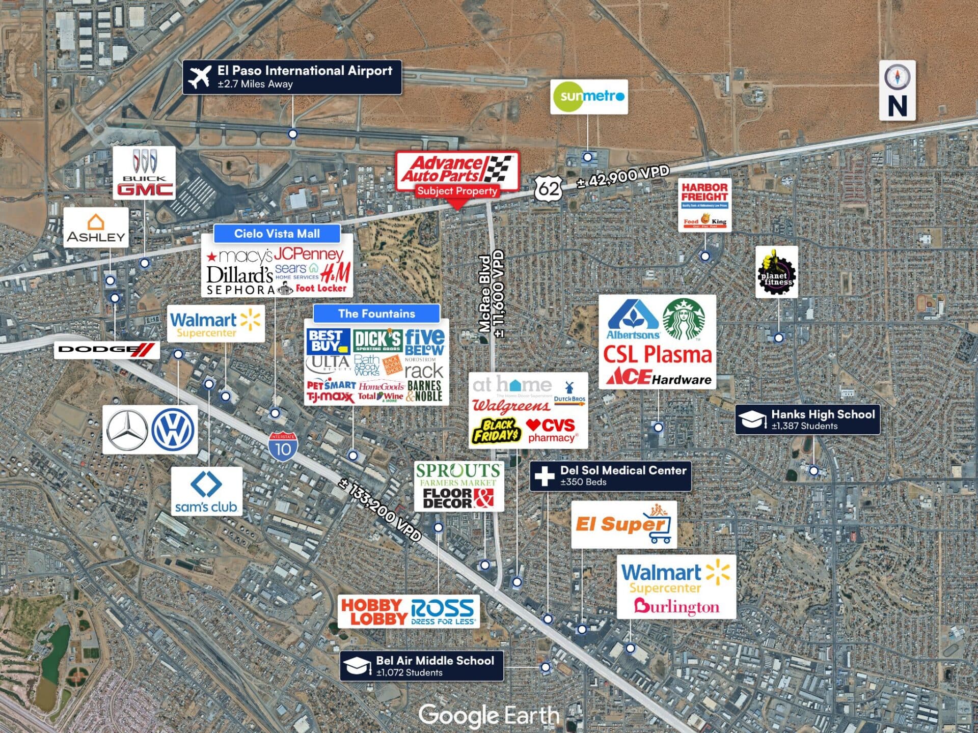 Proximity to El Paso International Airport: Situated along Montana Avenue with convenient access to El Paso International Airport, benefiting from both local traffic patterns and transient demand.