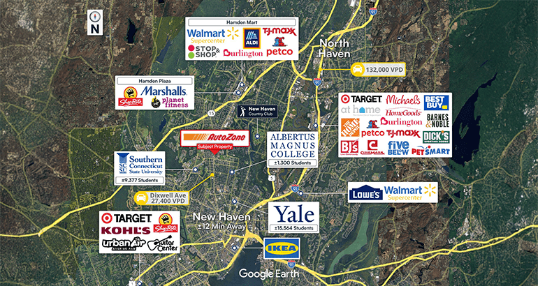 Proximity to Yale University: Located just 1.8 miles from Yale University, a world-renowned Ivy League institution in neighboring New Haven. Yale’s 15,564 students and status as the region’s largest employer drive consistent local traffic and economic activity.