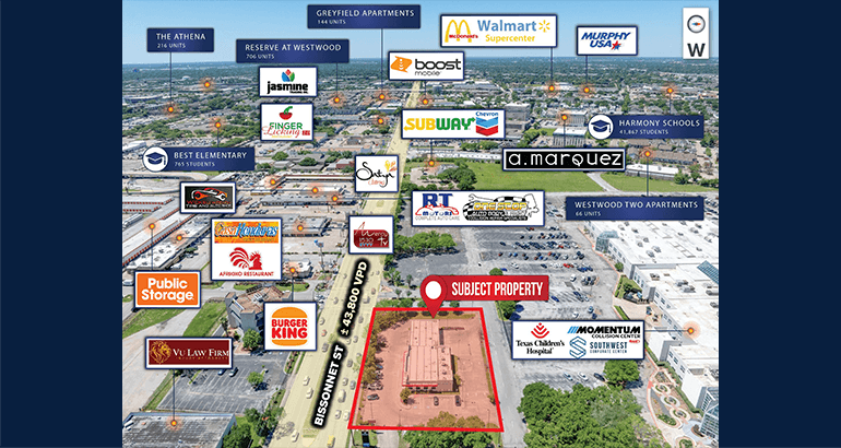 - Excellent Visibility – This bank is situated on ±0.98 AC of land along Bissonnet Street, which sees ±43,800 VPD. The property offers access to Houston’s Top Suburban Communities, the Texas Medical Center, downtown and several vital business hubs.