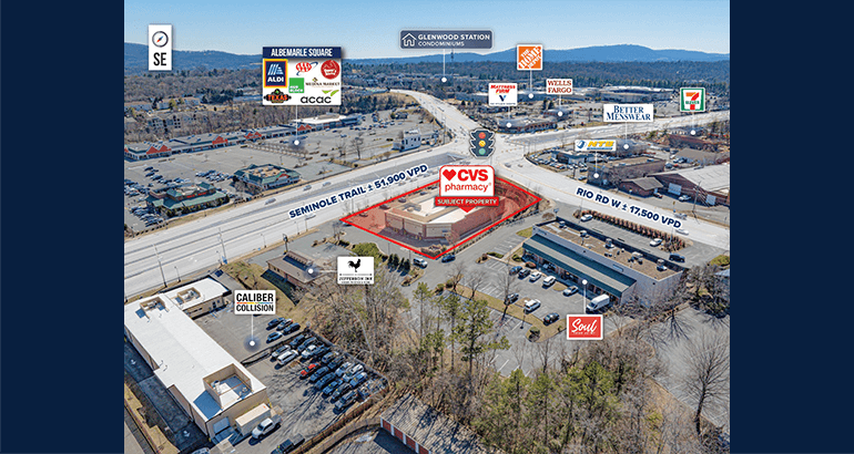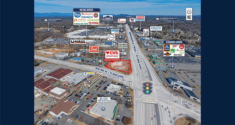 Premier Location – Located across from Fashion Square Mall and Albemarle Square Shopping Center seeing over ±69,400 VPD.