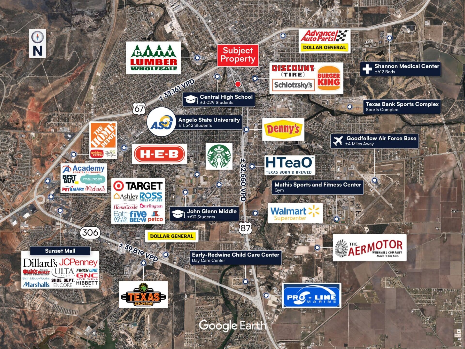 Proximity to Shannon Medical Center: CVS is ideally located less than ¾ mile from Shannon Medical Center and several affiliated medical office buildings. Shannon Medical is the only large hospital system in the region, serving 24 counties and a population of approximately 250,000 residents.