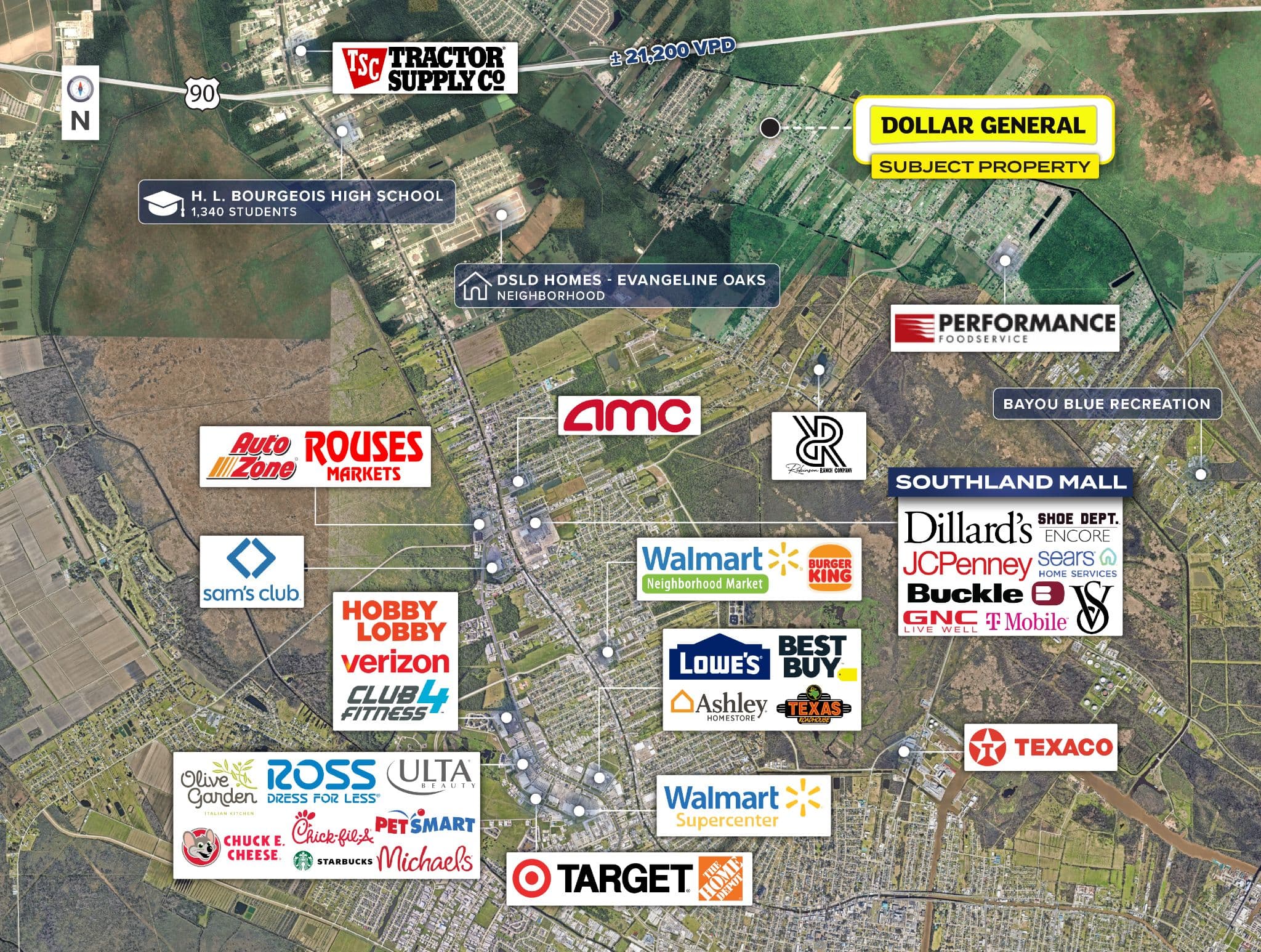• Nearby national tenants include Tractor Supply, AMC, Autozone, Walmart, Lowe’s, Best Buy, Verizon, and many more
