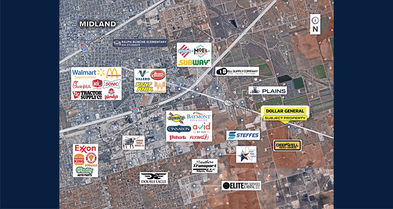 • ±34,000 residents in 5-mile radius | ±350,000 residents in Midland-Odessa, Texas