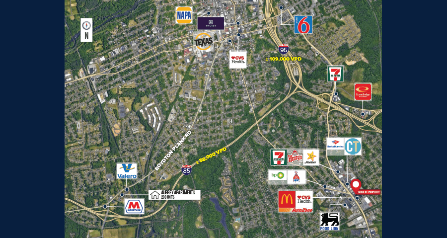 Nearby national tenants include McDonalds, Autozone, CVS, NTB, Food Lion, 7-Eleven, Hardees, and Wendy’s