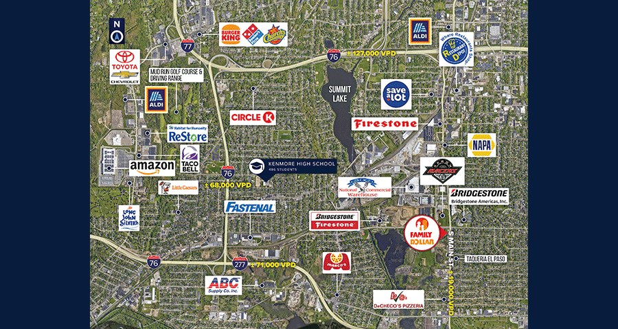 The subject property is strategically located in a dense retail corridor; nearby traffic generations include Bridgestone Americas Technology Center Firestone Stadium, FedEx Ship Center, and many more.