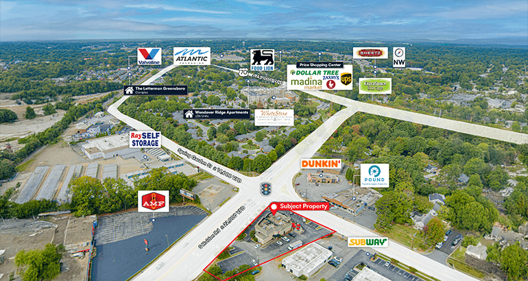 High-Traffic Corner Location – Positioned at the signalized intersection of Spring Garden St and Holden Rd, one of Greensboro’s most active corridors, with a combined ±34,000 vehicles per day (VPD) providing consistent exposure and accessibility.