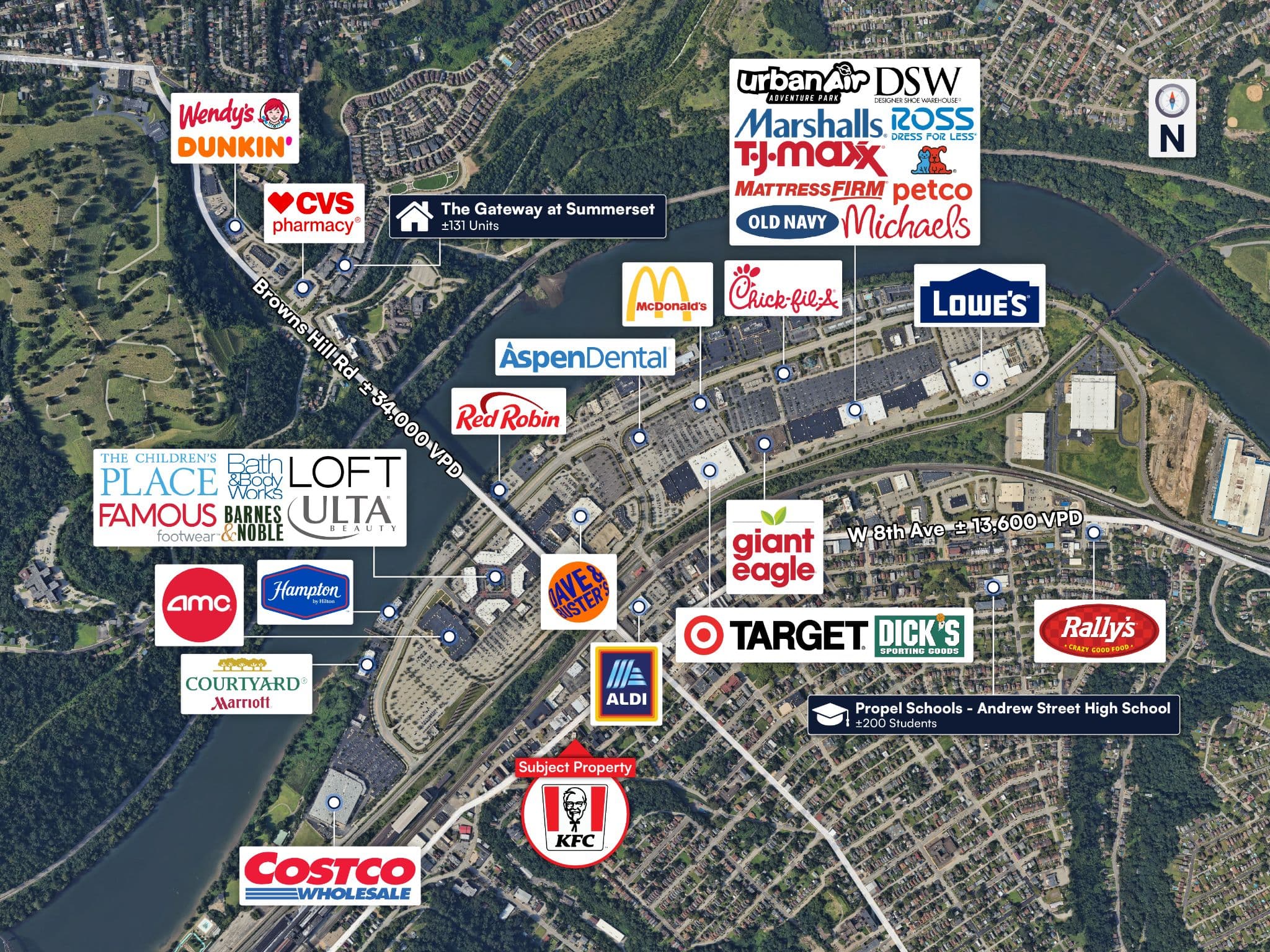 Prime Greater Pittsburgh Location – Situated roughly 15 minutes from Downtown Pittsburgh and less than 0.5 miles from The Waterfront, a top-performing super-regional open-air shopping center serving