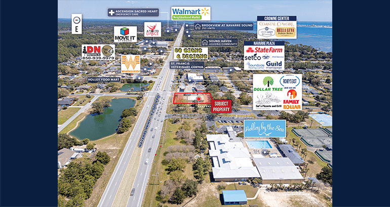 High Visibility – The subject property boasts prime frontage along Navarre Parkway (U.S. Highway 98), a major thoroughfare with strong daily traffic (±42,500 VPD). U.S. Highway 98 is a key east-west corridor stretching from Alabama to Florida’s east coast, providing exceptional visibility and accessibility.