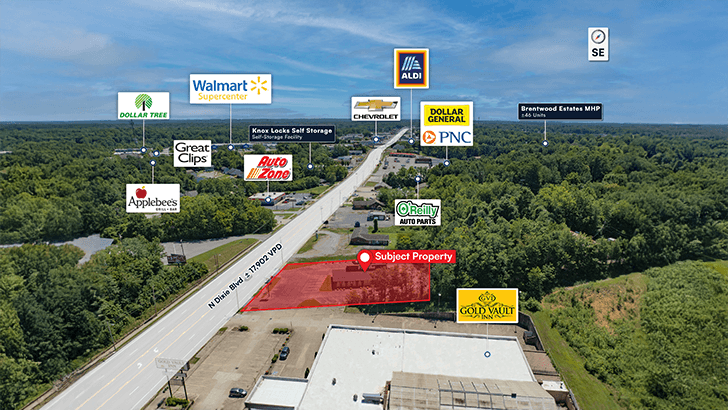 Prime Retail Location – Strategically positioned within Radcliff’s most active retail corridor, adjacent to high-traffic national retailers including Aldi and Walmart.