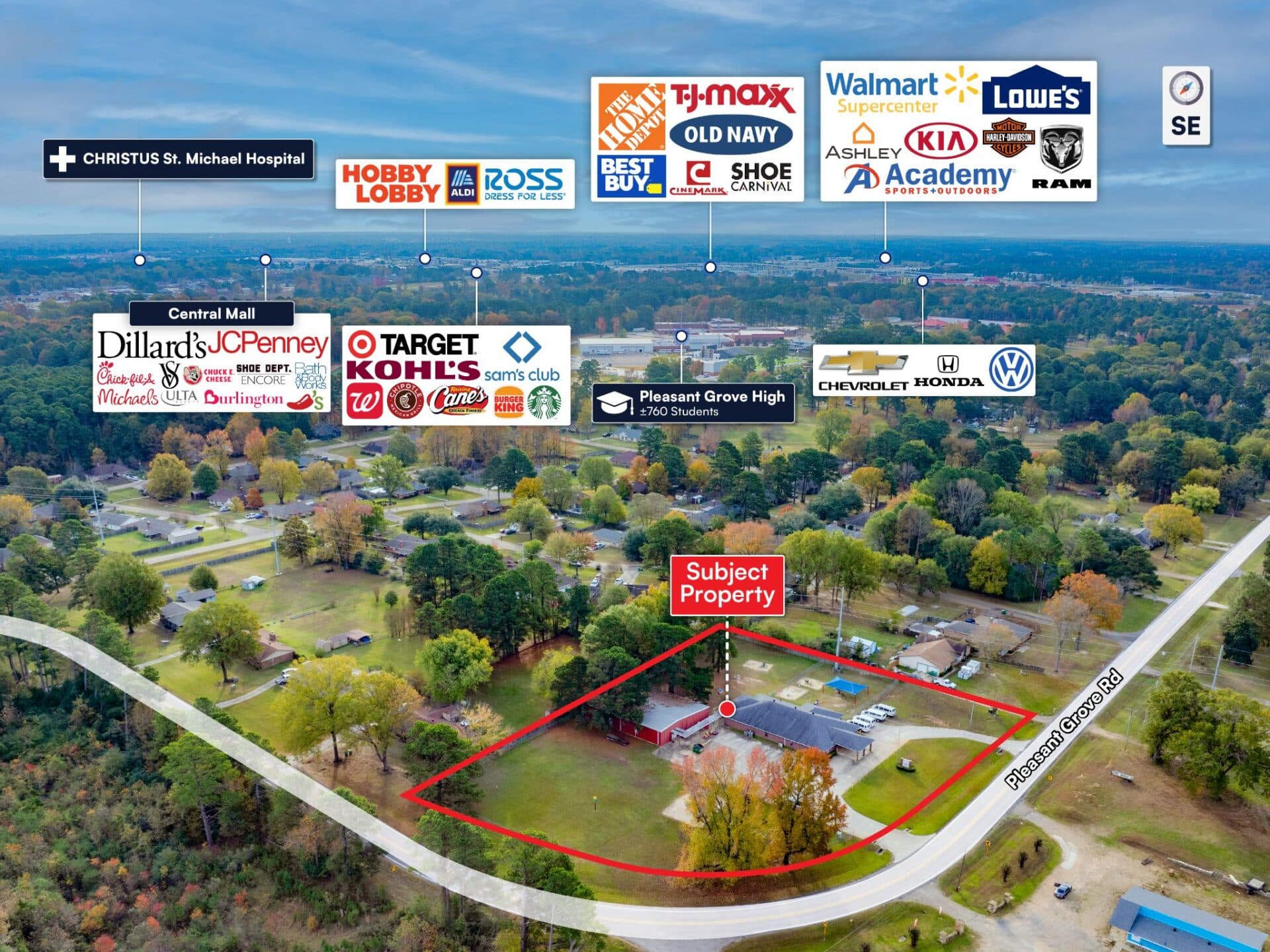 SurroundingSchools: Nearby schools include Pleasant Grove High School, Pleasant Grove Intermediate School, Pleasant Grove Middle School, Waggoner Creek Elementary School, Texas A&M University – Texarkana, and many more.