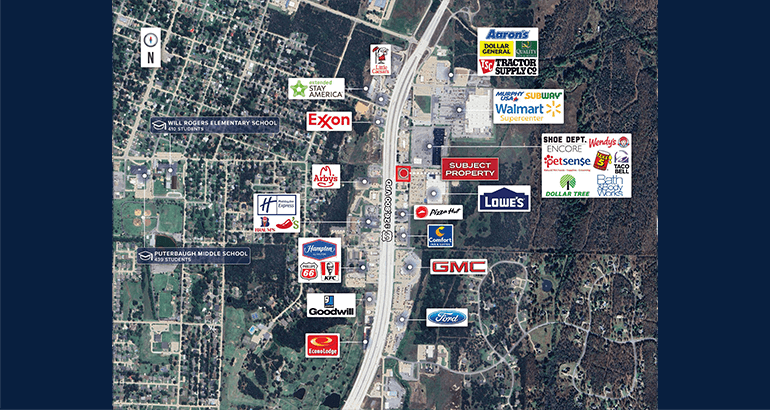 Nearby national tenants include Lowes, Wendy’s, Subway, Dollar Tree, Exxon, Pizza Hut, Tractor Supply Co., KFC, Chilli’s, and many more