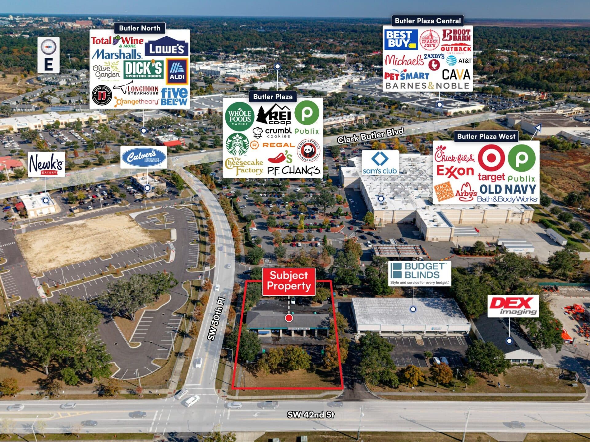 Located near Strong Retail – Notable retailers within 1/2-mile of the site include Sam’s Club, Walmart, Target, Whole Foods, Trader Joe’s, Lowe’s, Dick’s Sporting Goods, Chick Fil A, Culver’s, Best Buy and many other. The Butler Plaza is the densest retail corridor in the Gainesville market.