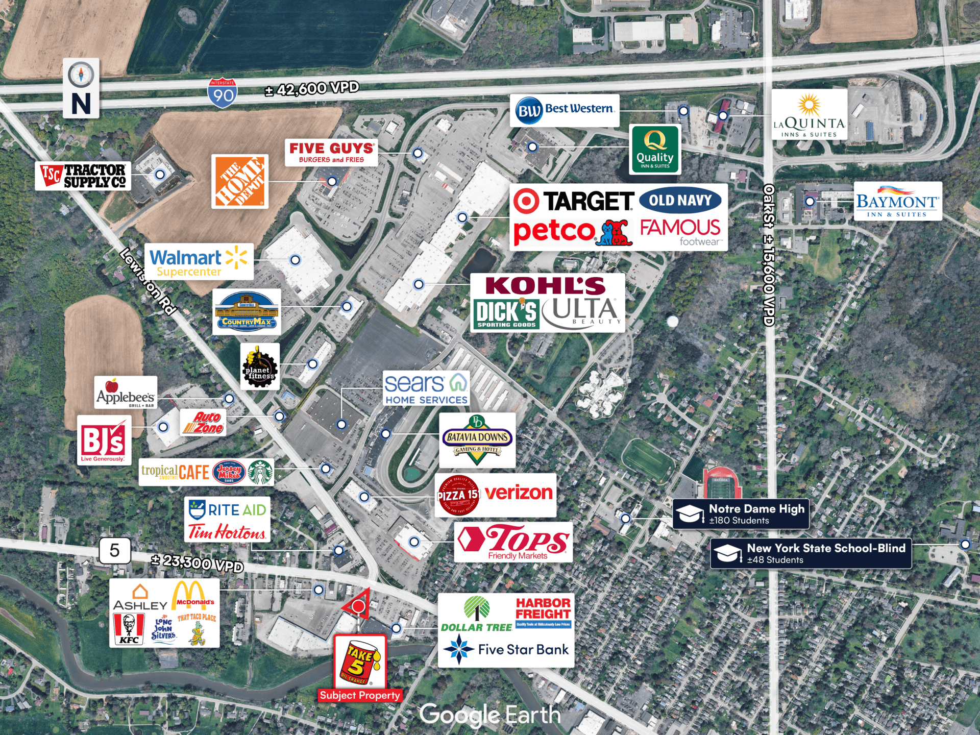• Well position at the intersection of Main St & Lewiston Rd which sees more than 23,300 vehicles daily