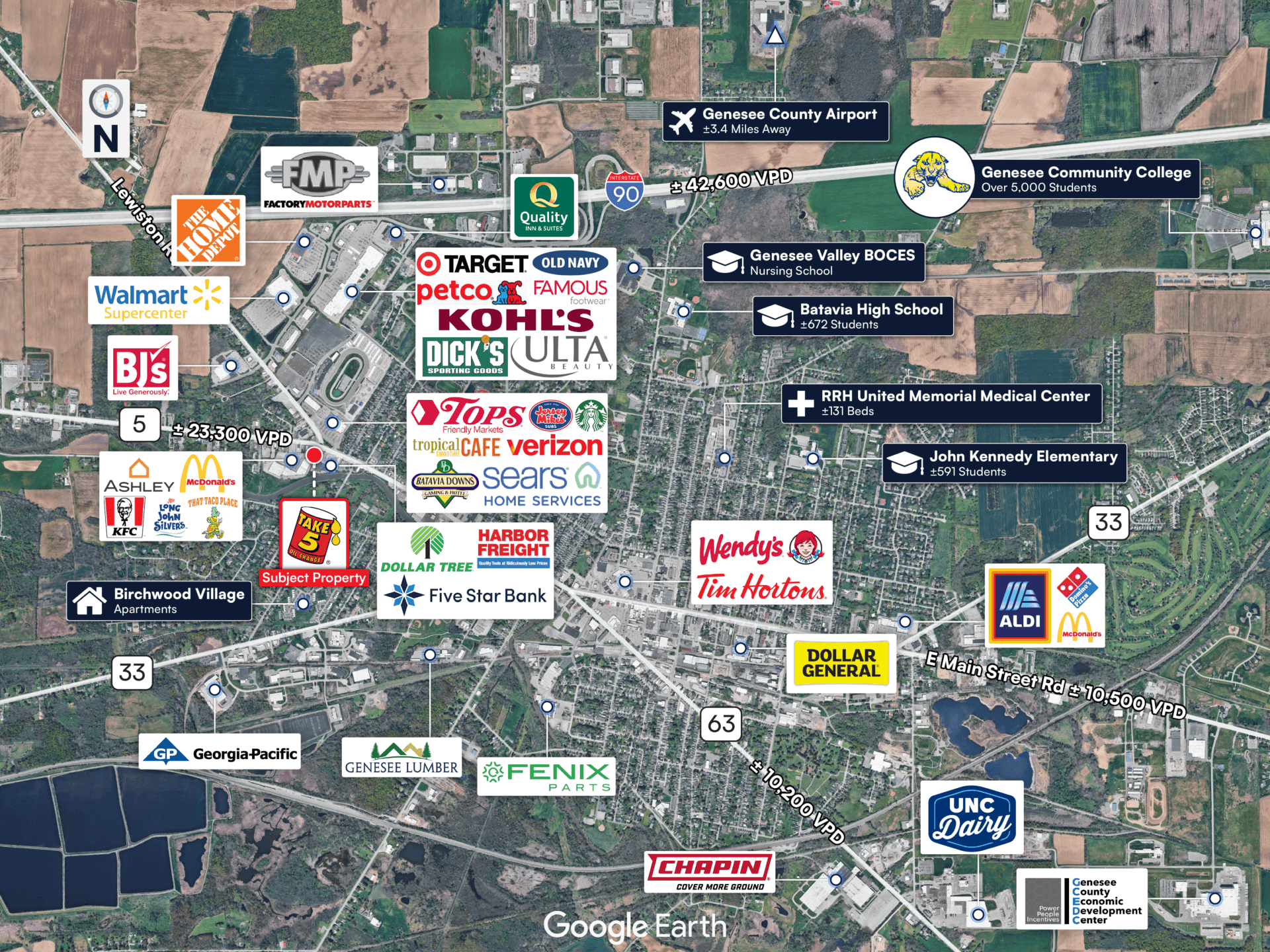 • 5-Mile population of ±23,301 residents & 10-Mile population of 39,237 residents