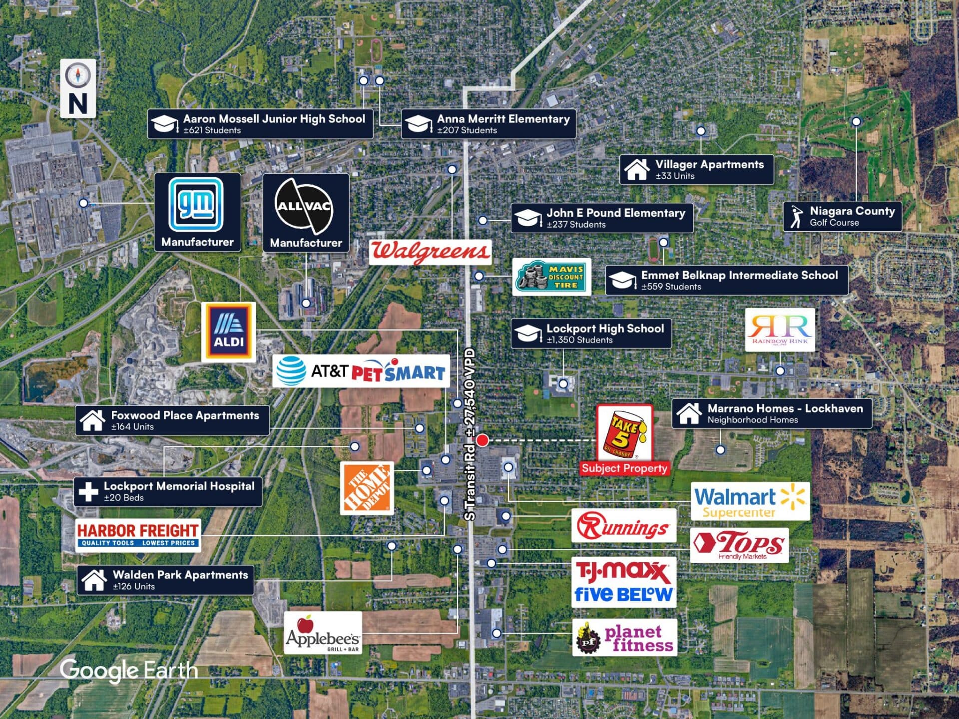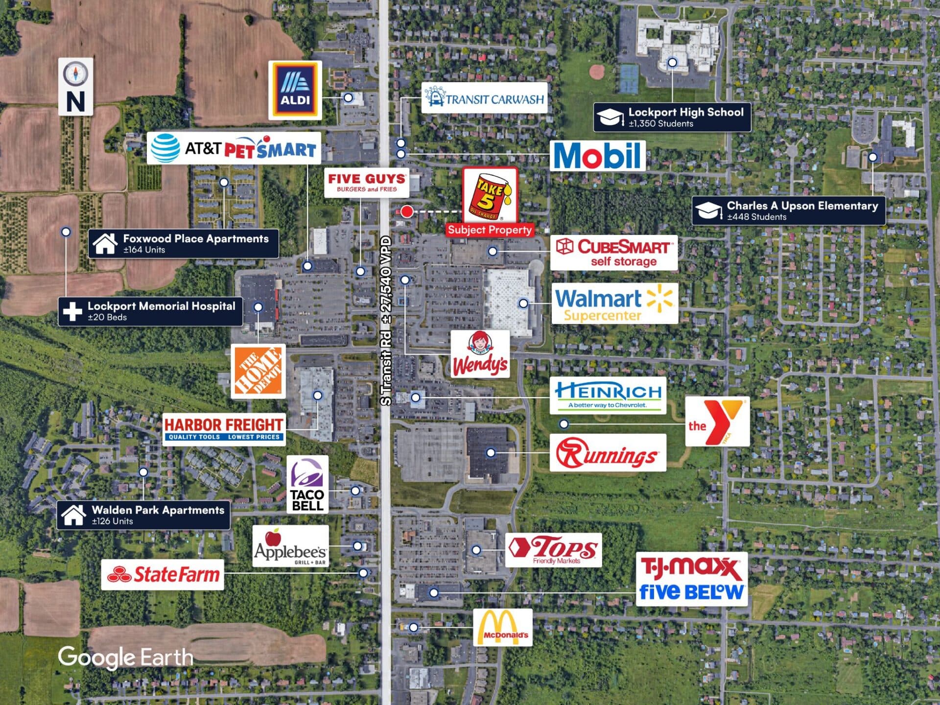Excellent visibility along Lockport’s dominant retail corridor surrounded by national retailers including Walmart Supercenter, Target, Lowe’s, Home Depot,