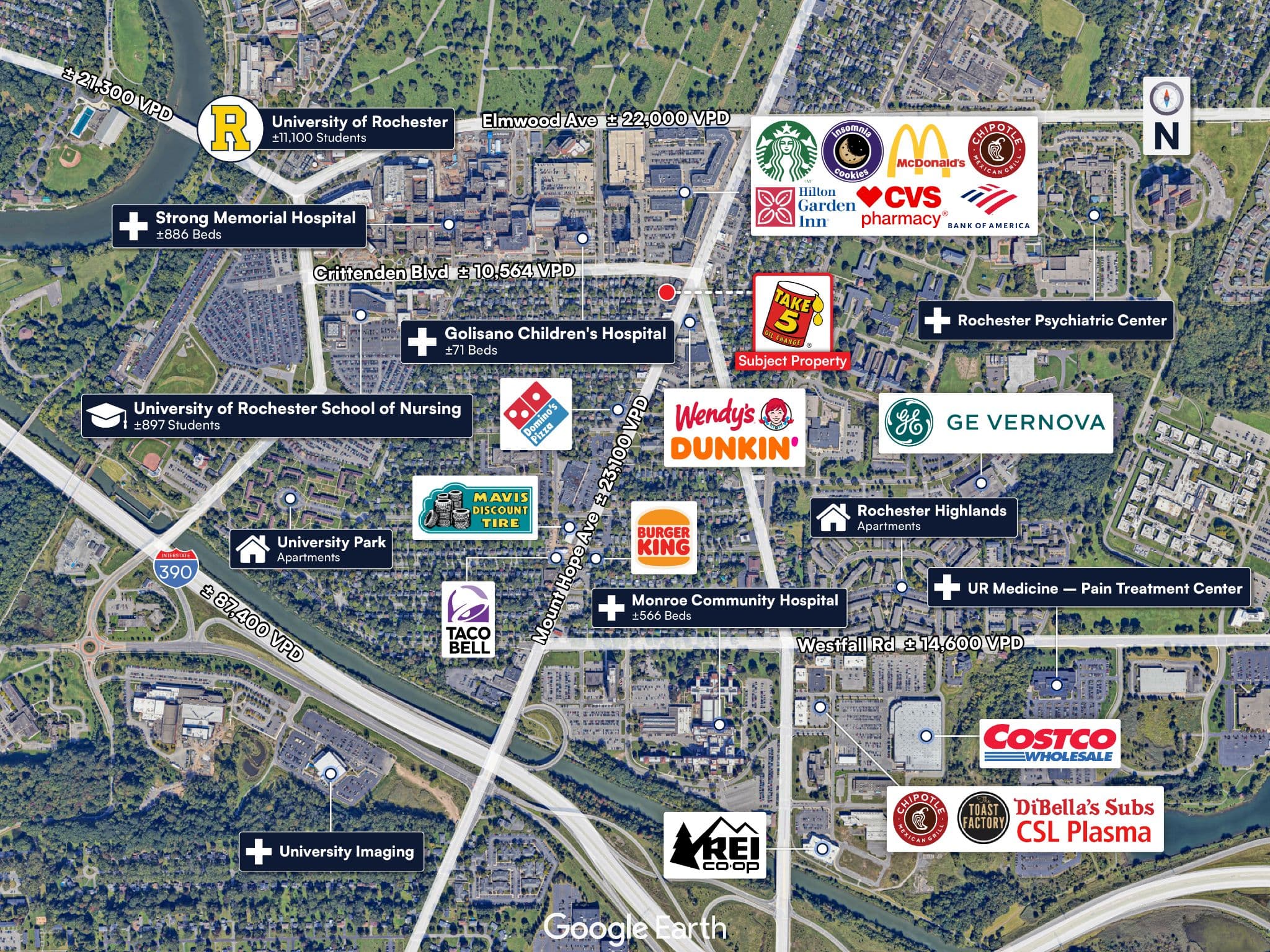 The subject property is within close proximity to The University of Rochester, Monroe Community College, and Rochester Institute of Technology (combined enrollment of ±36,600 students)