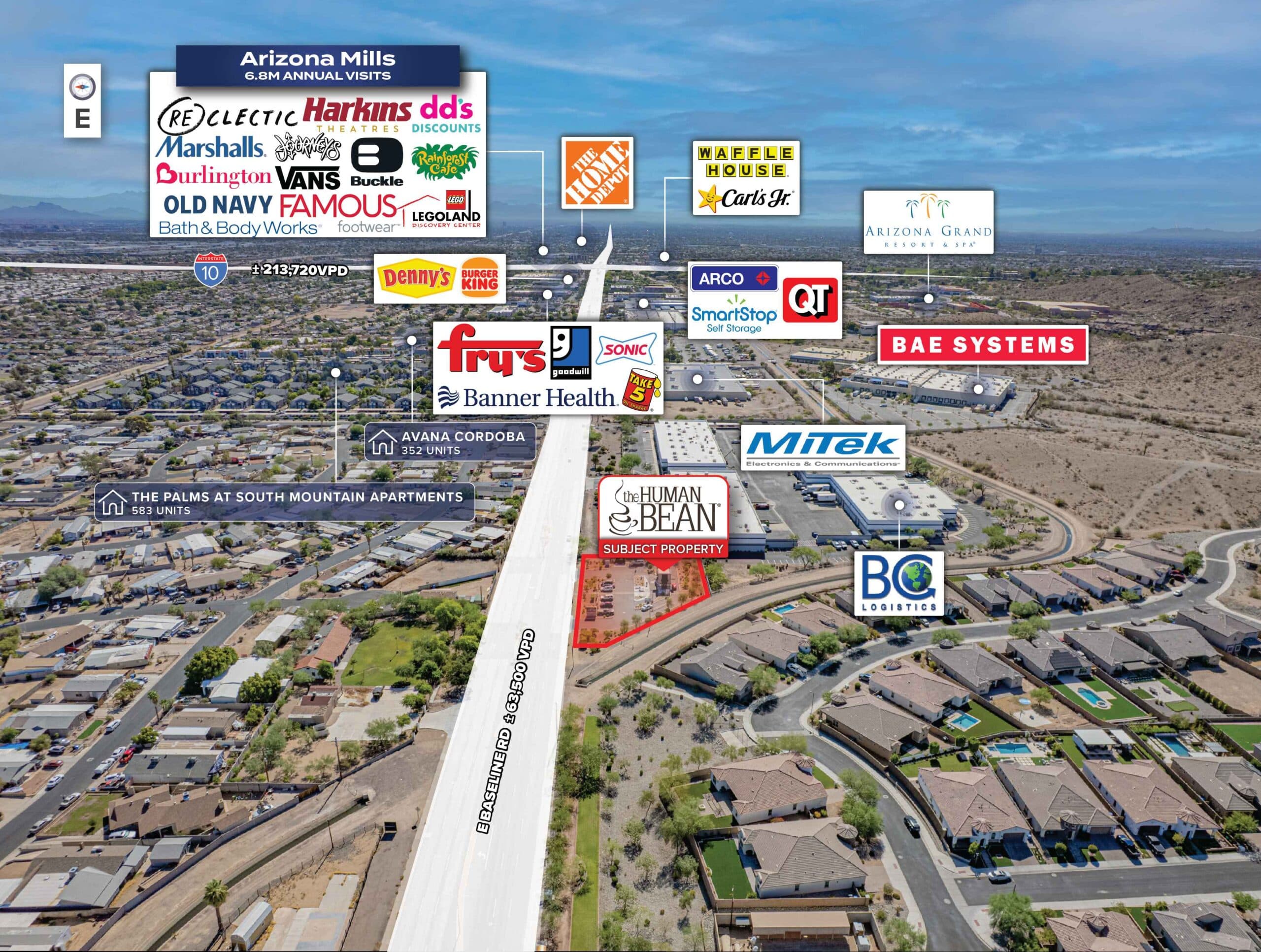 Strategic location – high visibility & access: Located on Baseline Rd with ±63,500 vehicles per day, and just over 1 mile from I-10 with ±213,000 VPD, ensuring constant exposure.