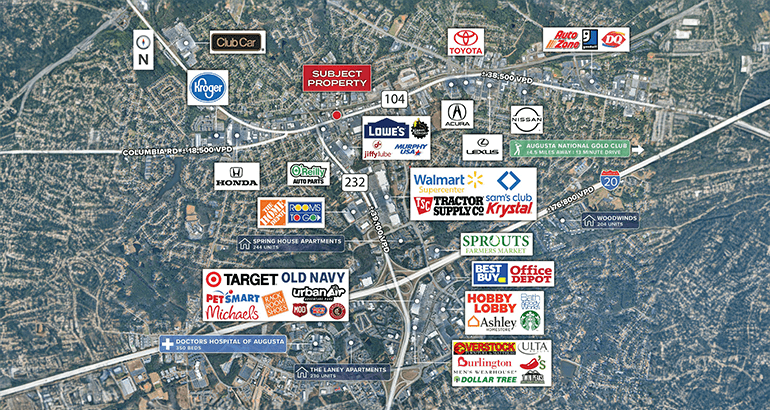 Thriving Retail Corridor – Situated along Washington Road, one of Augusta’s primary retail arteries, surrounded by national retailers, restaurants, and daily-needs traffic drivers.