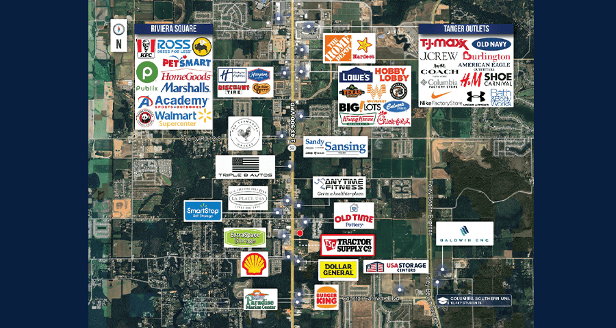 • Nearby national tenants include Shell, Dollar General, Burger King, Chick Fil A, Walmart Supercenter, The Home Depot, Hardees, Lowes and many more