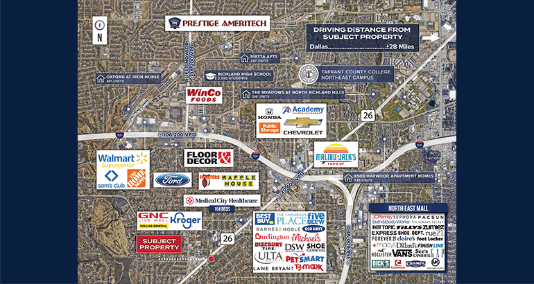 High-Traffic Visibility on Blvd 26: Located along a major commercial corridor with ±20,600 vehicles per day, offering excellent visibility and signage potential. Easy access to TX-183 and I-820 connects the site to Fort Worth, Hurst, and the broader Mid-Cities.