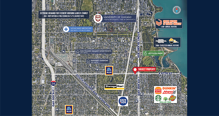High Traffic Volume: Positioned at the busy intersection of E 67th Street and S Stony Island Avenue, with daily vehicle counts surpassing 60,854.