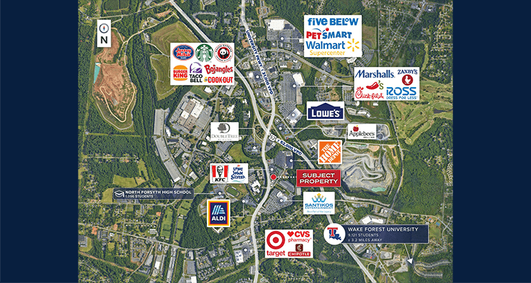 Nearby Schools & Universities – Adjacent to North Forsyth High School (1,100+ students/teachers) and near Wake Forest University (9,000+ students).
