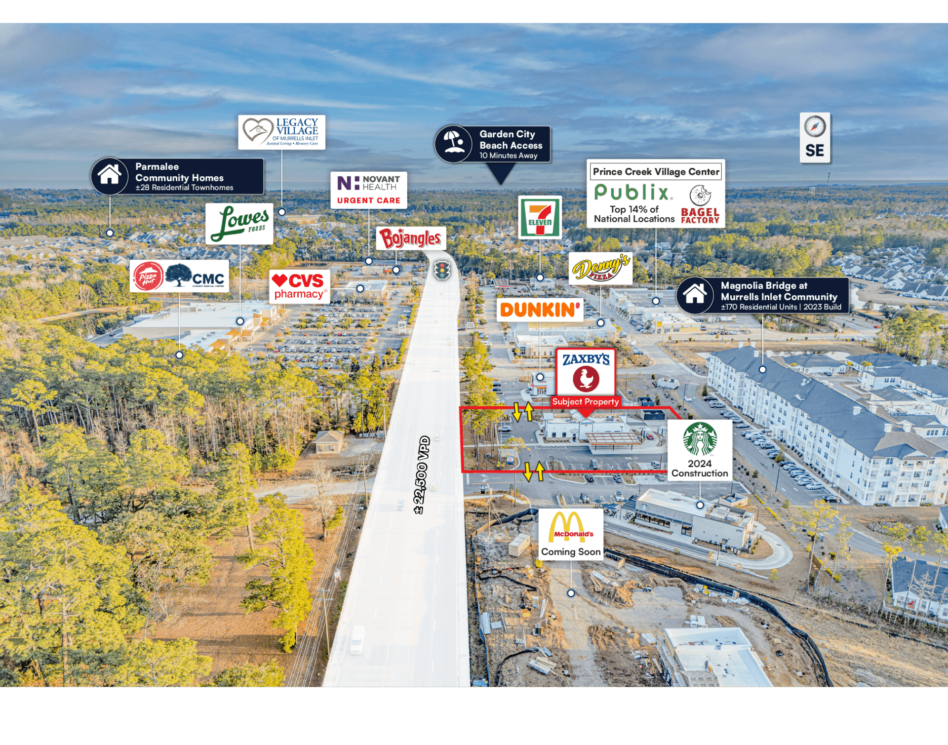 Strong retail synergy at the North Myrtle Beach location, with Starbucks recently built adjacent and major national retailers, including McDonald’s, entering the corridor