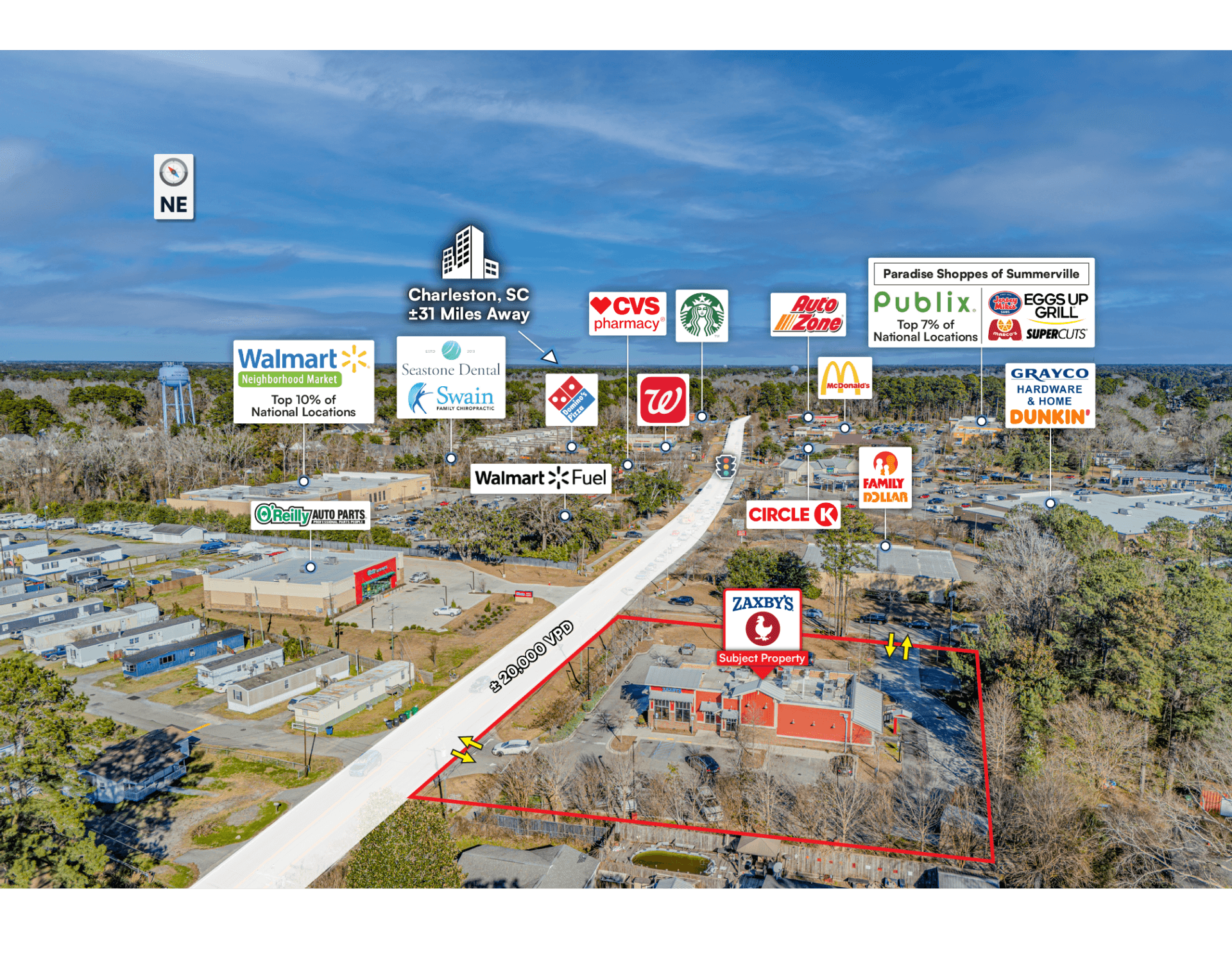 North Charleston locations benefit from average household incomes exceeding $100,000 and historical population growth above 2%